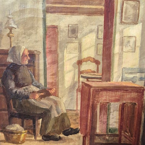 Yelva Vermehren maleri blomster i vase med guldramme