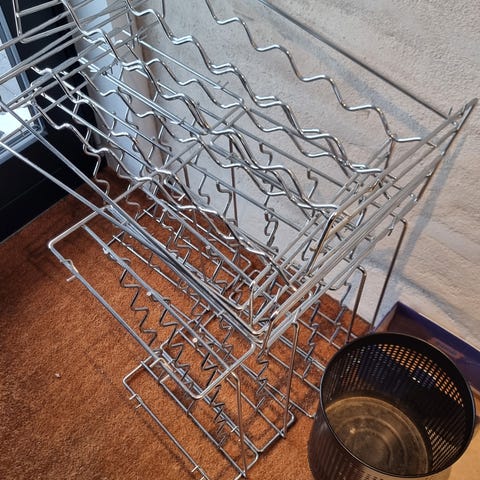 Hver ‘hylde’ kan have 4 vine og jeg har i alt 12 stk, så plads til 48 vine.