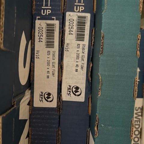 1 stk ny Swedoor Master GW Fiber. Højre. 925x2040x63 DB30/35 dB brand og støjdør