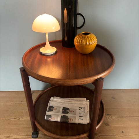 Dansk design bakkebord / barbord / rullebord i egetræ.