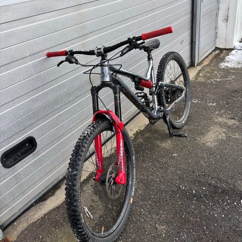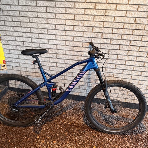 Canyon stitched 180 i str s, 24 tommer hjul med Maxxis dæk. Cyklen kommer med styr, frempind, håndtag, pedaler fra Burgtec. Den har Sram level bremser, kommer uden forbremse. Cyklen er i rigtig god stand.