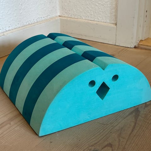 bObles kylling i blå nuancer. Der er små brugsmærker men ingen dybe eller voldsomme. Den er stadig i rigtig god stand.