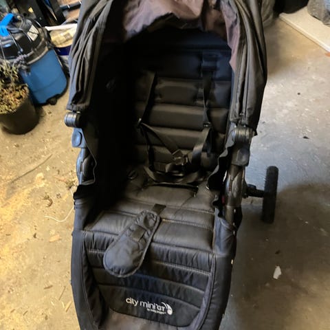 Baby Jogger City Mini klapvogn i sort. Trehjulet model med drejeligt forhjul, som kan låses. Polstret sæde med justerbar ryglæn og 5-punktssele. Aftagelig frontbøjle med bakke og kopholder. Kaleche med udtræk for ekstra skygge. Egnet til ét barn og velegnet til hverdagsbrug og ture på fast underlag.