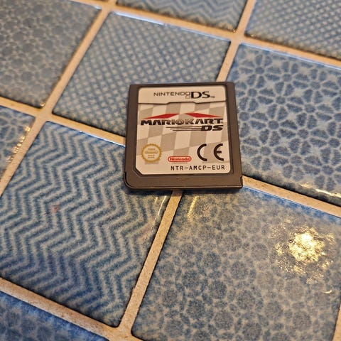 Nintendo DS Mario Kart DS spil. Spilkassette til Nintendo DS-konsol med racing-spillet Mario Kart DS. Leveres i lille plastetui som vist på billedet. Velegnet til brug på kompatible Nintendo DS-systemer.