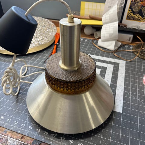 Stor loftlampe i krom/sølv farve, fra Frandsen Lamper.