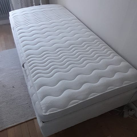 IKEA Sultan seng med ben i grå betræk. Sengen står på træben og fremstår som en enkel enkeltseng/boxmadras-løsning. Egnet som seng i soveværelse, gæsteværelse eller ungdomsværelse. Yderligere mål og detaljer kan angives af sælger efter behov. Kan leveres ifølge aftale.