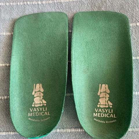 Matas forfodsindlæg skosåler i størrelse 40. Velegnede til nedsunken forfod. Indlæggene er lavet i ægte skind med polstret støtte under forfoden. Undersiden har klæbeflade, så sålerne kan fæstnes i skoene. Velegnet til brug i almindelige sko for ekstra støtte og komfort under forfoden. Aldrig brugt. Sælges billigt