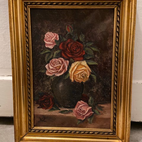 maleri med gule blomster i guldramme