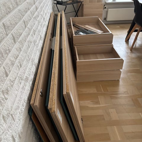 Ikea Pax garderobeskab med 10 trådskuffer og 6 hylder.