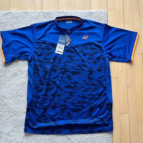 Yonex W-1902E sports t-shirt i størrelse S. T-shirten er rød med hvide og sorte paneler og har krave med kort stolpelukning. Materialet er 100 % polyester. På billederne ses målene: ca. 60 cm i længden og ca. 50 cm på tværs over brystet. Egnet som sportstrøje til fx ketchersport eller anden træning.