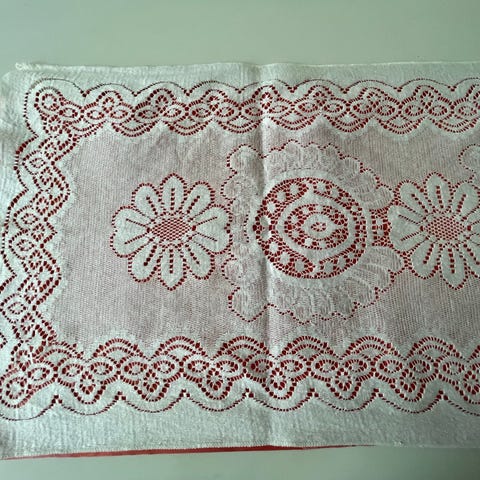 Retro bordløber dug brun, rust, creme m hjerter Ca 80 x 40 cm i bomuldslærred