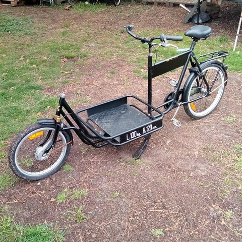 Long John cykel Sælges. Der er sat et andet styr på og monteret i 2025 et gear baghjul med 7 gear.