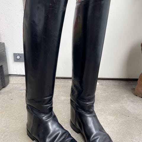 Kortskaftede ridestøvle i sort læder. Støvlerne har lynlås foran og elastikpaneler i siderne for bedre pasform. Ydersålen er i gummi med mønster for bedre skridsikkerhed. Velegnet som ridefodtøj eller til anden brug, hvor der ønskes en robust læderstøvle med lav hæl. Lille størrelse