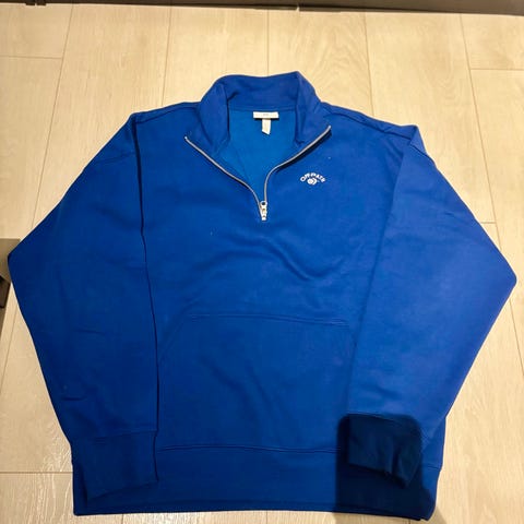 H&M sweatshirt til herre i størrelse L. Trøjen er abrikos farve og fremstillet i bomuld. Klassisk model med rund hals, lange ærmer og ribkanter ved hals, ærmer og bund. Velegnet til hverdagsbrug og som lag over T-shirt eller skjorte.