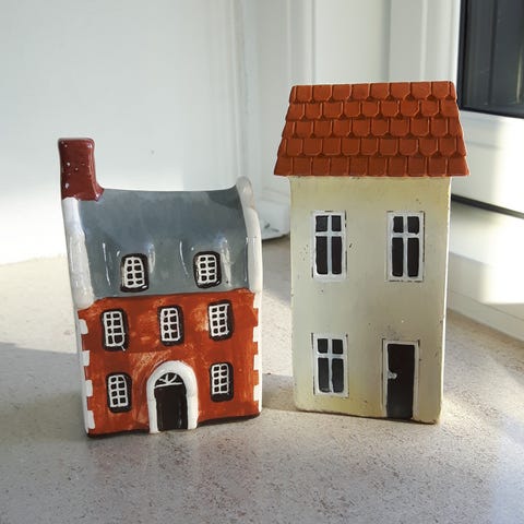 Bausatz modelhuse rækkehuse sæt. Sættet består af flere forskellige rækkehusbygninger til modeljernbane eller modelby. Husene leveres som byggesæt i plast, der samles og males efter behov.