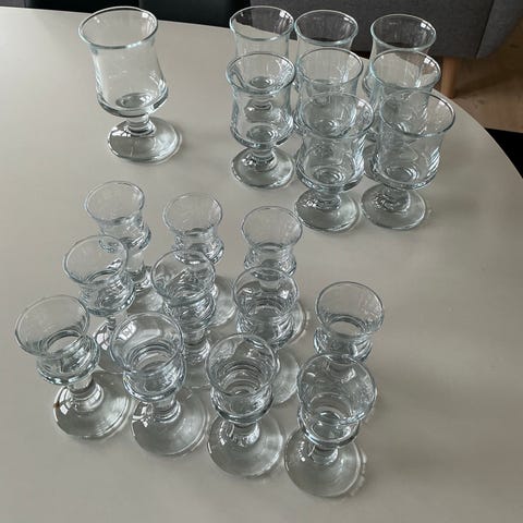 Holmegaard glas på fod i klart glas. Sættet består af flere ens glas med kort stilk og rund fod. Glassene egner sig til servering af for eksempel vand, øl, drinks eller dessert. Klassisk design i gennemsigtigt glas, der passer ind i de fleste borddækninger.