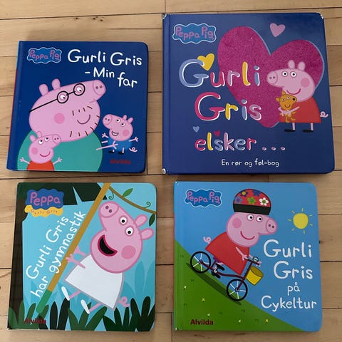 Gurli Gris billedbøger sæt. Samling af flere små børnebøger med Gurli Gris-motiver. Bøgerne er i hårdt pap og egner sig til højtlæsning for mindre børn. Indholdet omfatter forskellige hverdagssituationer og historier med Gurli Gris og hendes familie.