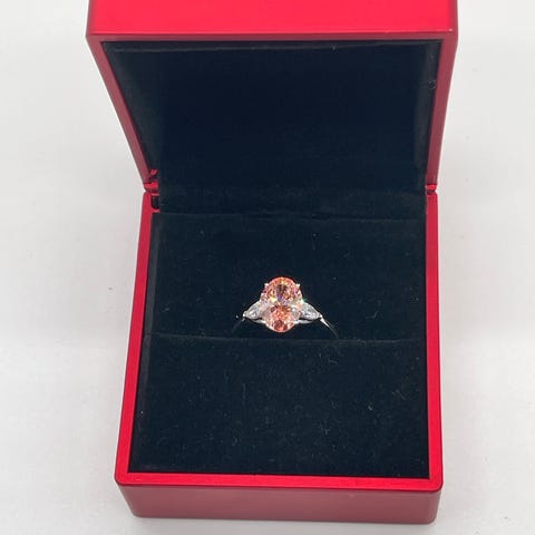 Sælger ring med 2,01 carat laboratoriedyrket diamant i marquise (navette) slibning.