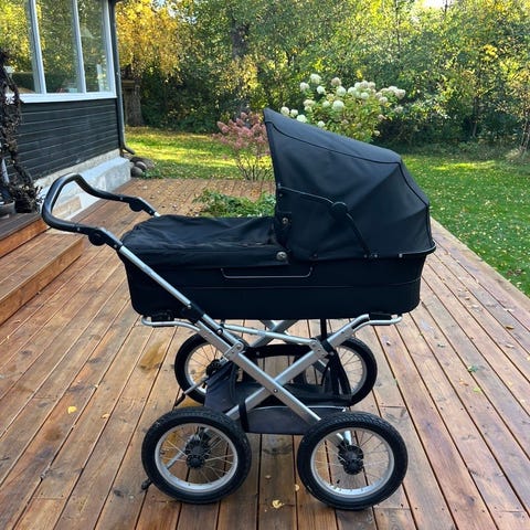 Krom stel og bred velour i mørkebrun. Virkelig flot og i super stand. En rigtig eye catcher 👼🍼