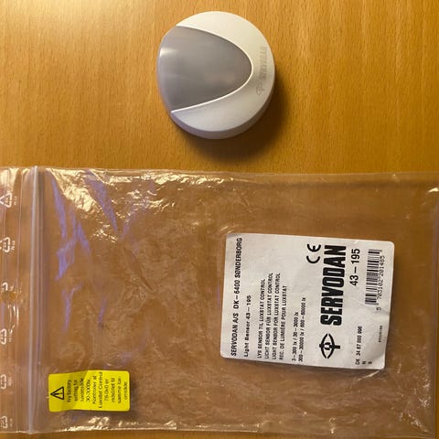Servodan Minilux Control 35-082 til styring af belysning. Enheden er beregnet til montering på DIN-skinne