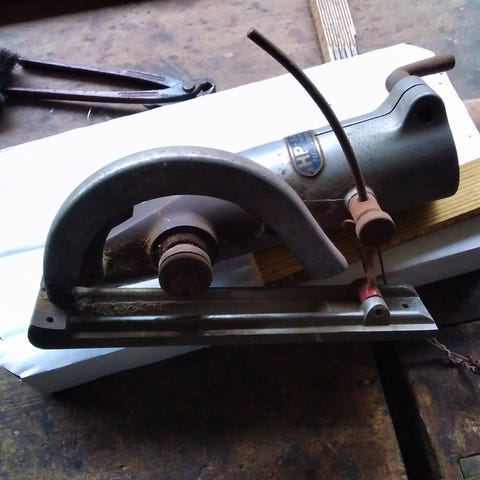 Mærke Hanning. Made in Germany. Fin størrelse, så er nem at transportere med sig i bilen. Med afbryder på maskinen. Virker fint. Uden skjold. 220 volt. Se billederne.