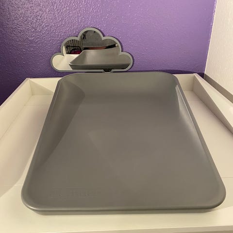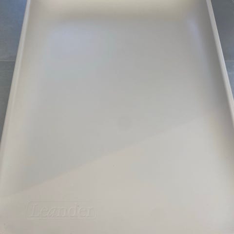 Den er helt som ny, og aftørret ugenligt med en fugtig og tør klud. Der har altid været håndklæde på puslepuden under brug.