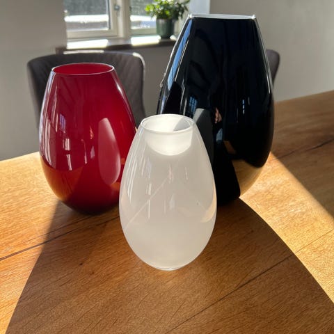 Holmegaard vase i glas med flerfarvet mønster i brune, rosa og hvide nuancer. Vasen har en let udadgående form med klar glasfod. Egnet til dekoration eller som beholder til blomster og grene i hjemmet.