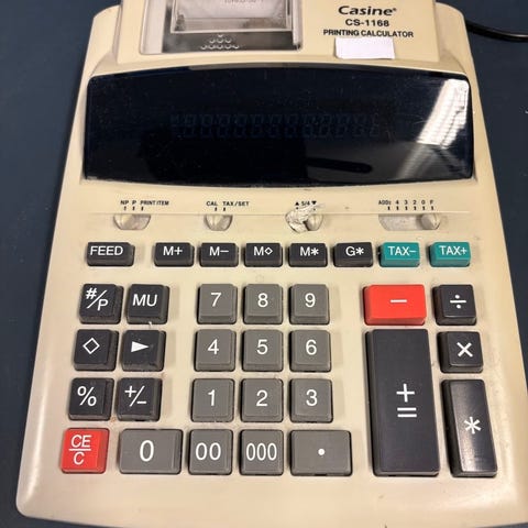 Professionel strimmelregner med stort to-farvet lysdisplay, der viser negative tal med rødt. Har et utroligt brugervenligt design, hvilket gør udregningerne ligetil.