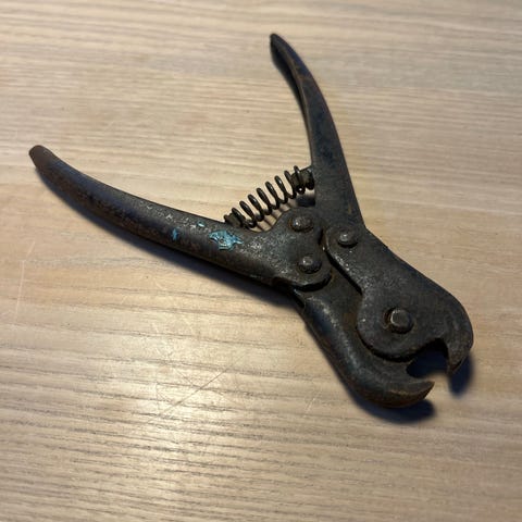 Tang i metal med profilerede kæber og lange, lige håndtag med let vinkel. Egnet til fastholdelse og greb om mindre emner. Simpelt, robust design uden plast- eller gummibelægning på håndtagene. Kan anvendes i værksted, hobbyarbejde eller andre opgaver, hvor der er behov for et fast greb om genstande.