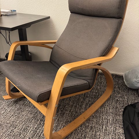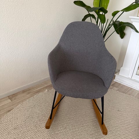 Stof gyngelænestol med skammel sælges meget billigt.