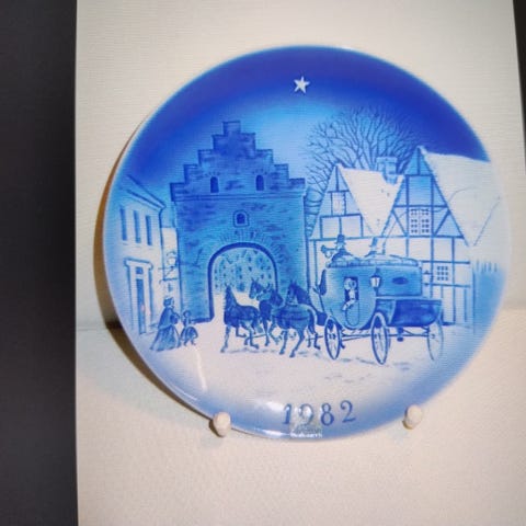 Platte med engle ved juletræ. Designet af Kaare Klint 1908