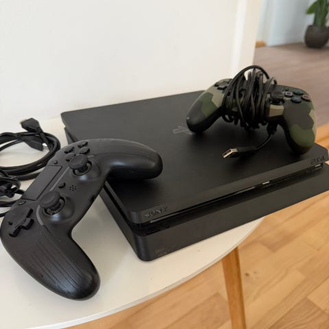 Sælger min PS4 Slim med den store harddisk på 1 TB. Konsollen er i rigtig god stand og kører fejlfrit.