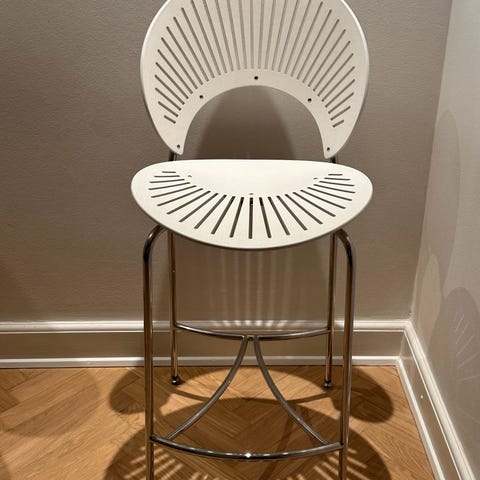Den ene stol har en lille revne i ryglænet, men den kan sagtens bruges alligevel.