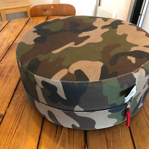 Komfortabel rund fodskammel eller puf, der passer ind.