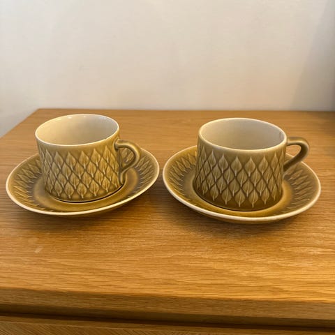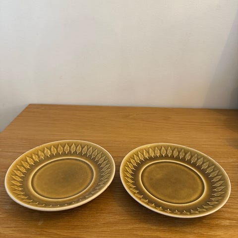 Virkelig smukke retro kage tallerkener i stellet Relief, designet af Jens Harald Quistgaard for Kronjyden (senere Bing & Grøndahl)