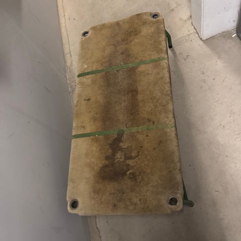 Giv dit hjem kant med dette originale afsætsbræt fra gymnastiksalen. Det er i super flot stand med en lækker varm glød i træet og de ikoniske grønne lameller, der giver et fedt grafisk udtryk.