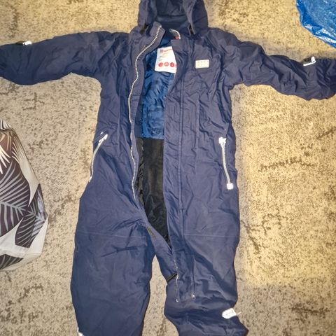 Lego Wear flyverdragt i str. 110. Flyverdragten er blå og har gennemgående lynlås foran. Den har elastik ved ærmer og ben samt fodstropper. Indvendigt er der navneskilt og glat foer med mønster. Meget vandtæt og vindafvisende. Skal lige vaskes, men ellers er den i rigtig god stand uden huller eller andet. Alle lynlåse fungerer 100%. Fra røg-, parfume og dyrefrit hjem. Kan sendes.