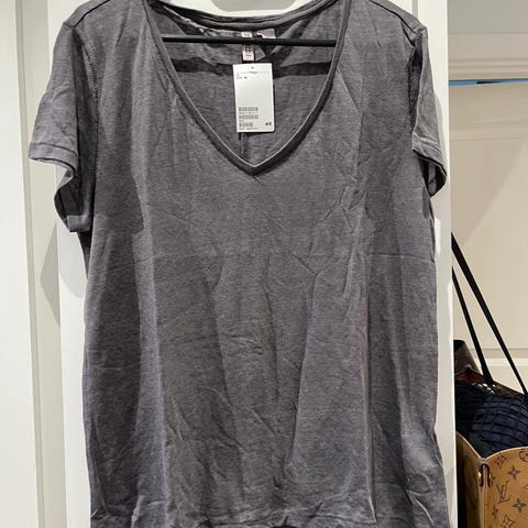 H&M L.O.G.G. T-shirt til kvinder. Hvis du normalt bruger S, vil den sidde lidt løst.