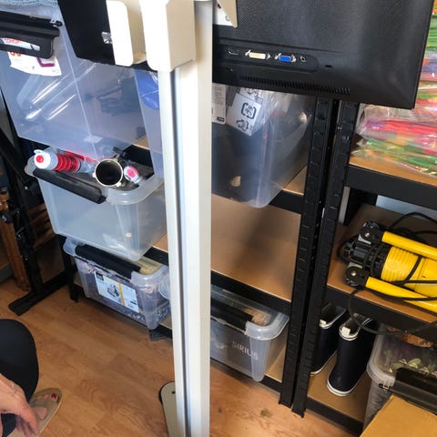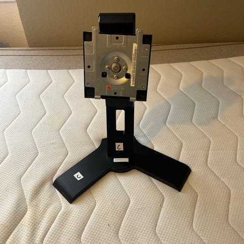 Standeren er udført med rund fodplade og to lodrette rør i metal, der bærer en monteringsplade til højttaler. Egnet til montering af kompatibel B&O-højttaler i et fast og fritstående setup. Farvetonen fremstår som børstet metal med sorte detaljer på monteringspladen og toppladen. Velegnet til brug i stue eller lytterum, hvor højttaleren ønskes placeret på gulvstander.