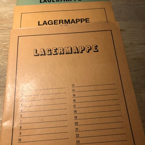 Grøndlandske julemærker i helark opbevaret i lagermapper: