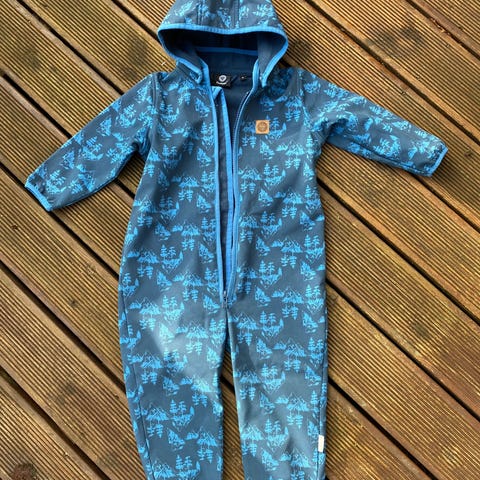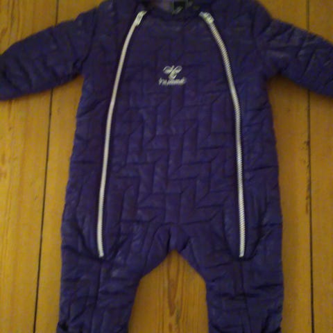Lilla Hummel Fleece Flyverdragt/Sovedragt med fødder og luffer. Huen har to spidser ligesom en lille trold. Lynlås foran. Står 100% som ny.