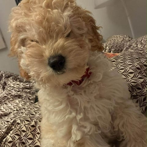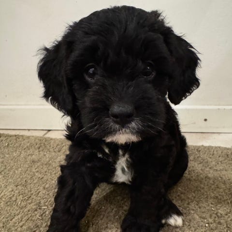 Denne lille hvalpepige, som er halvt cavalier king Charles (moder) og halvt dværgpuddel (fader), har jeg lige fået hjem for et par uger siden, men må desværre konstatere, at denne hvalp ikke er det rette match for mig.