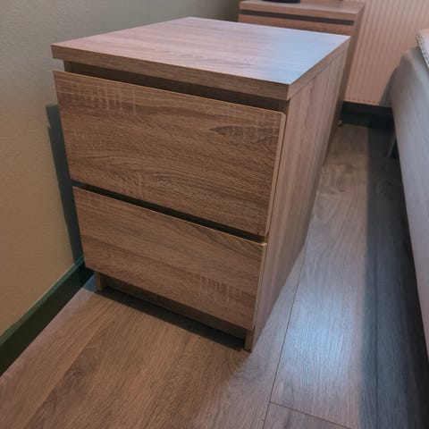 Et brugt sengebord fra Ikea. Malm. 2 skuffer. Se den fra ny her: https://www.ikea.com/dk/da/p/malm-kommode-2-skuffer-hvid-90625319/ hvor prisen er 400, her får du den for 150 og samlet.