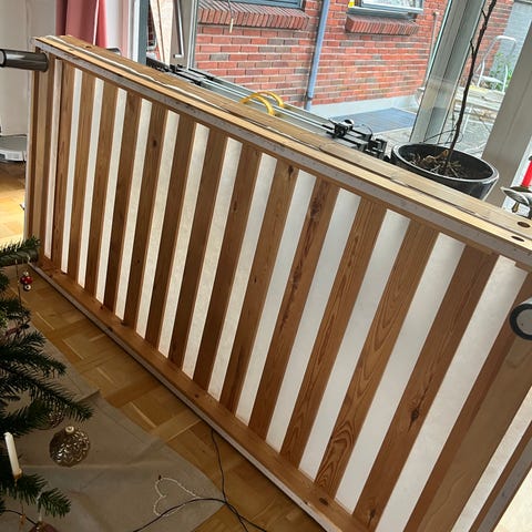 2 sengerammer kan anvendes samlet eller adskilt. Kan stå på gulv, så ingen montering til væg. Fejler intet.