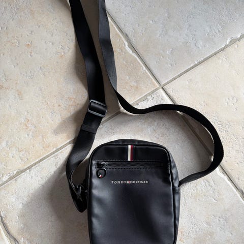 Tommy Hilfiger skuldertaske unisex i sort kunstlæder. Tasken har justerbar skulderrem og lynlåslukning. Foran er der en mindre lynlåslomme til småting. Indvendigt er der et hovedrum, som egner sig til hverdagsting som pung, nøgler og mobil. Designet er kompakt og velegnet til både mænd og kvinder, der ønsker en lille crossbody- eller skuldertaske til daglig brug.
