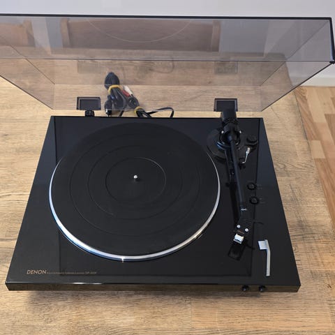 Jeg sælger min Denon DP-300F, da jeg har opgraderet. Det er en fuldautomatisk pladespiller i stilrent sort design, som både er nem at bruge og leverer en rigtig flot lyd.