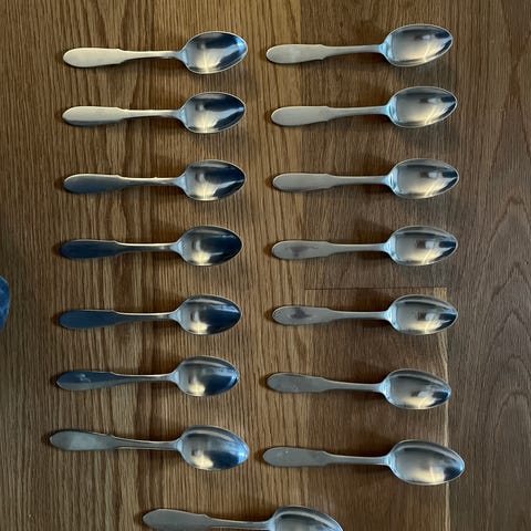 Georg Jensen spiseskeer i mat rustfrit stål. Sættet består af seks skeer med enkelt, tidløst design.
