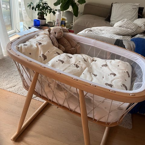Cam Cam Copenhagen vugge med blødt (organisk bomuld), polstret kant og aftagelig madras.