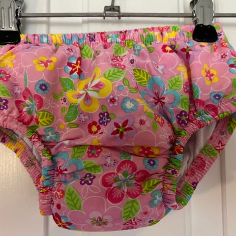 Baby Ble-Badebukser fra Beco Baby. Hot pink med grønne blomster. Står 100% som nye.