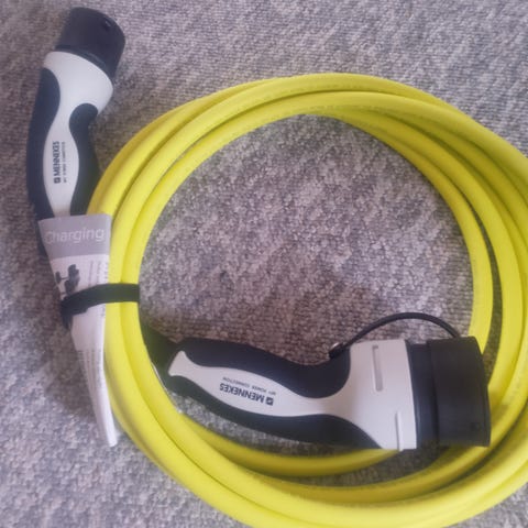 Mennekes ladekabel type 2 i blå farve. Kablet har type 2-stik i begge ender, som anvendes til opladning af elbiler og plug-in hybridbiler via ladestandere eller vægopladere med type 2-tilslutning. Farven på kablet er blå, og stikpropperne er udformet med flere kontaktpunkter til trefaset AC-opladning, afhængigt af bil og ladeboksens specifikationer.